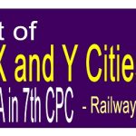 List of X and Y Cities for HRA in 7th CPC - Railway Board ANNEXURE To Board’s letter no. E(T&A)II-2017/HRA-7 dt. 19.07.2017 LIST OF CITIES/TOWNS CLASSIFIED FOR GRANT OF HOUSE RENT ALLOWANCE TO RAILWAY EMPLOYEES NOTE : The remaining cities/towns in various States/UTs which are not covered by … [Read more...] about List of X and Y Cities for HRA in 7th CPC – Railway Board